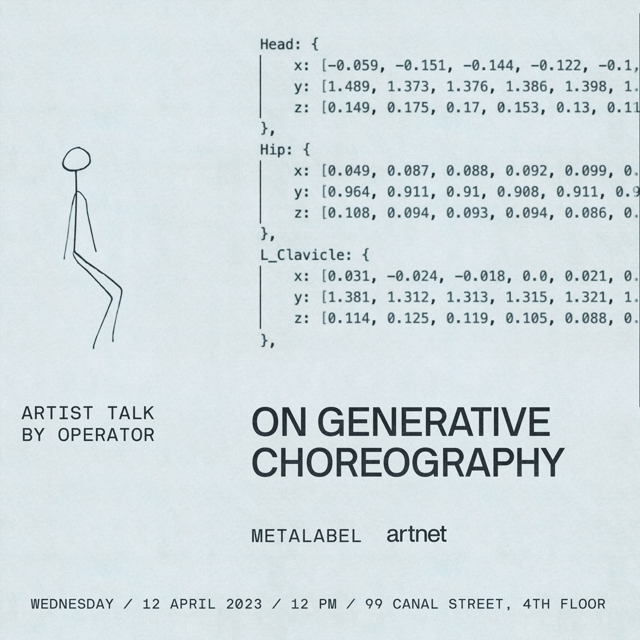 Artnet and Metalabel will host a talk by Operator titled “On Generative Choreography” which is followed by a conversation between Operator and Erick Calderon of Art Blocks.